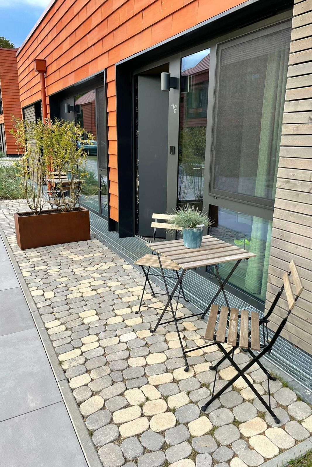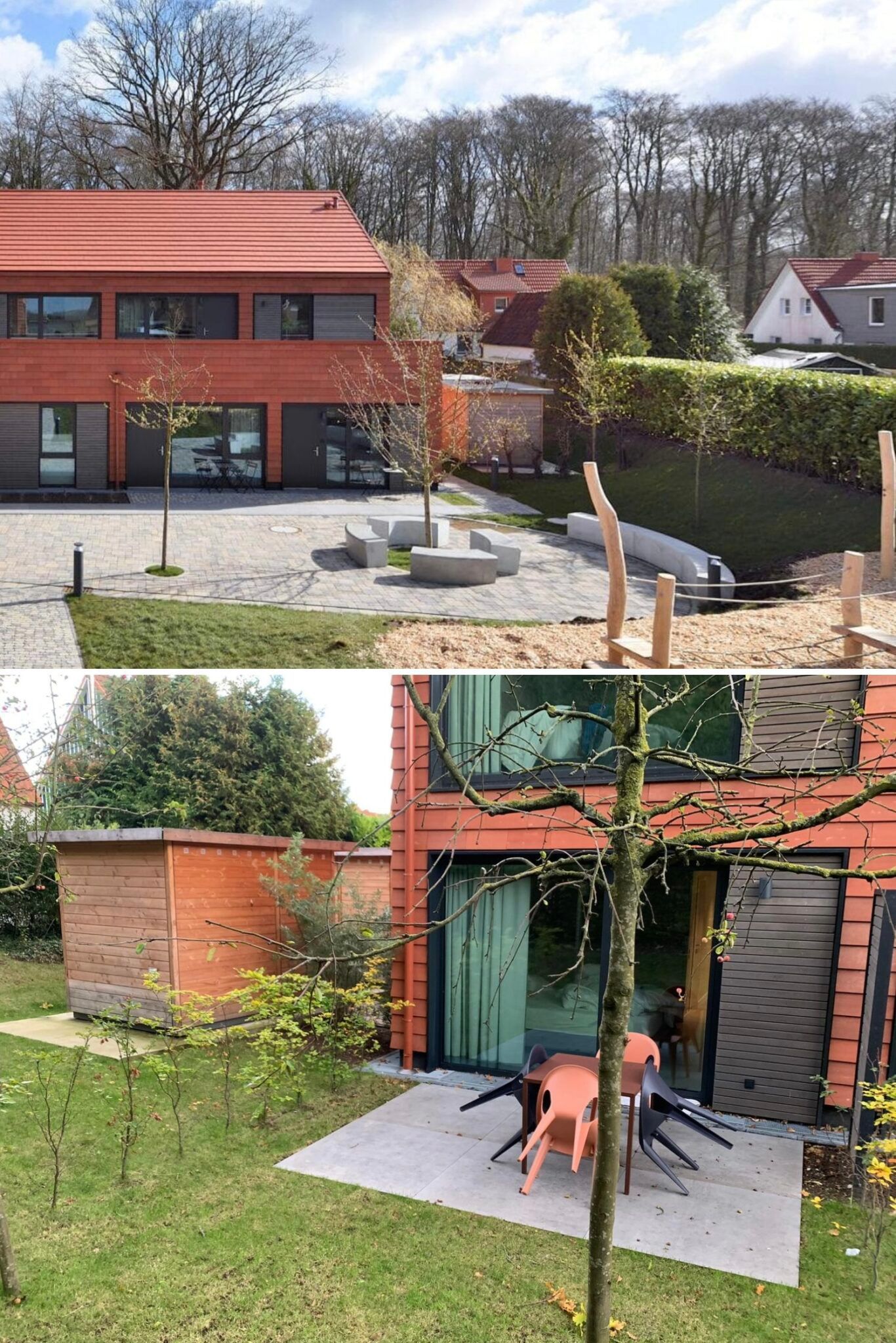 Die „Kleine Lotta No.17“ liegt im verkehrsfreien Bereich. Haustür auf- und los gehts. Durch die bodentiefen Fenster im Essbereich und der kleinen Terrasse (vorne)hat man die Kinder sogar im Blick.